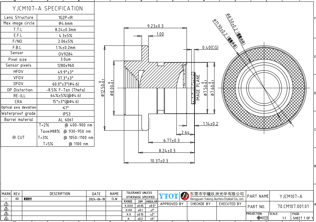 OV9284 MAX Image Height Ø4.6 EFL4.3mm Car Behavior Detection Lens Images |